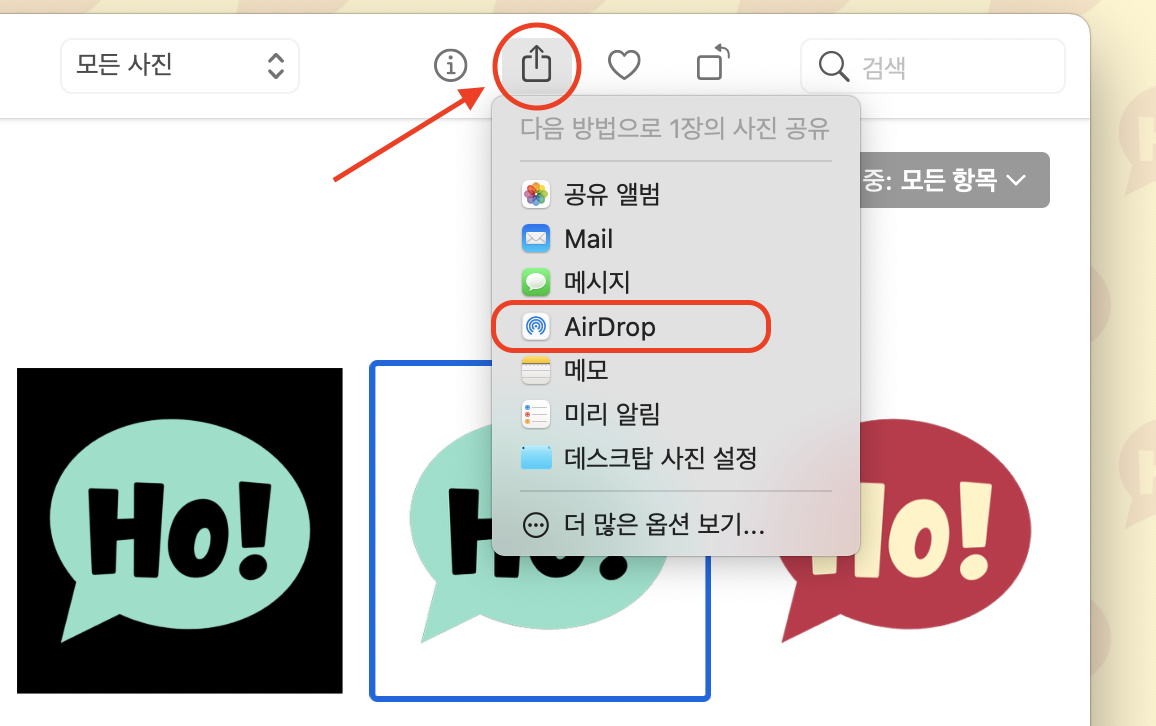 ※ AirDrop은 가까운 거리에 있는 사람과의 공유기능입니다.